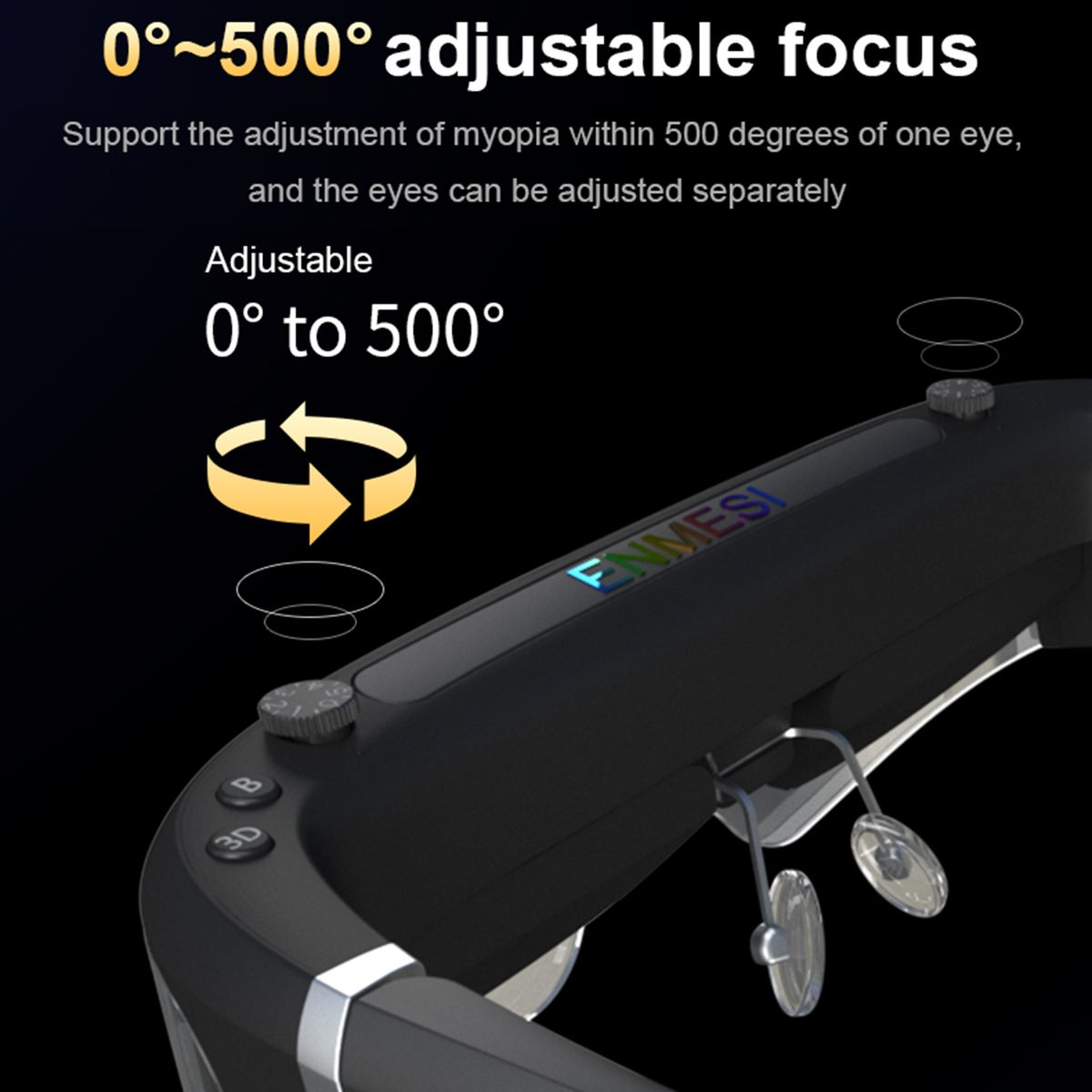 Personalized Myopia Adjustment: The glasses supports myopia adjustment from 0° to 500°, ensuring that users with nearsightedness can enjoy the content without the need for additional glasses.