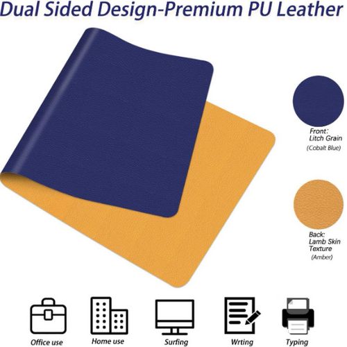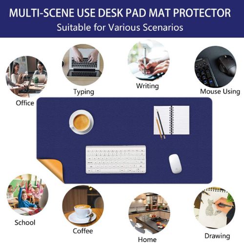 Multifunctional and DIY: The large desk pad (80 x 40 cm) is the perfect desk organiser to hold keyboards and mice, as well as iPads, headphones and other work equipment. It can provide a soft and flexible grip. We have not chosen stitched edges as some of our customers want to determine the size or shape themselves.Non-slip: We offer many different colours of table mat desk, there is always one for you. To increase the slip resistance, we have equipped the back with a faux suede that provides enough friction to prevent slipping during use. The comfortable and smooth surface can be used as a mouse pad, desk pad, notepad and desk mat.Durable: the wipeable desk pad is made of PU leather. It is water and oil resistant, heat resistant and protects your glass/wooden table from scratches and contamination from liquids. If it gets dirty, simply wipe it with a damp cloth. It can be used for dining table, pet coaster, kids painting mat and craft mat.Environmentally friendly: the material of the desk mat is environmentally friendly faux leather, BPA-free, non-toxic and odourless and is extensively ventilated after production. Due to the long sealing time in the box, the pad smells slightly of leather after opening. It is recommended that people sensitive to odours use the pad in a ventilated area for 2-3 hours.Portable: the desk pad is soft and thin. And the small strap is in the holder. When you want to store it or take it with you, simply roll it up and tighten it with the strap. It is very light, so you can take it anywhere you want. (As it is rolled up and packed, please roll the mat in the opposite direction after unrolling, then it will flat quickly