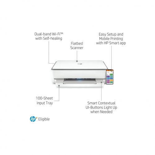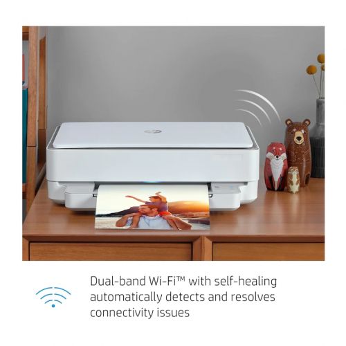 Get started fast with simple setup that guides you through each step to seamlessly connect on any device. Self-healing Wi-Fi® automatically detects and resolves connectivity issues to help reduce interruptions. Get connected with Bluetooth® and start printing fast from your smartphone or tablet - easy setup. Access and print files on your network with wireless networking.