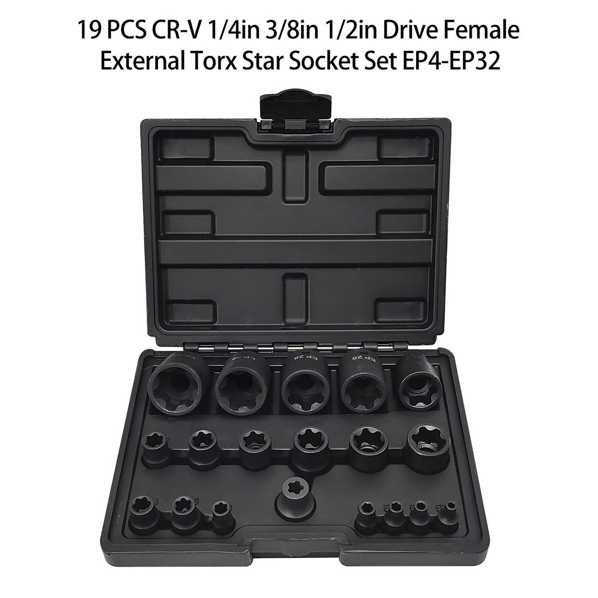 Buy EP Socket Sets 19 PCS CR-V 1/4in 3/8in 1/2in Drive Female External Torx Star Socket Set EP4-EP32 in Nigeria