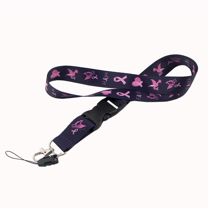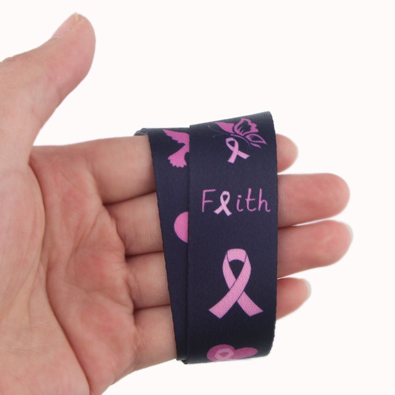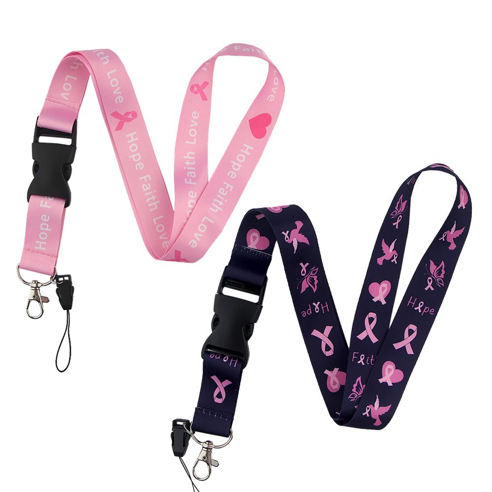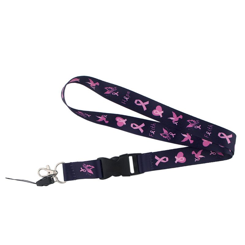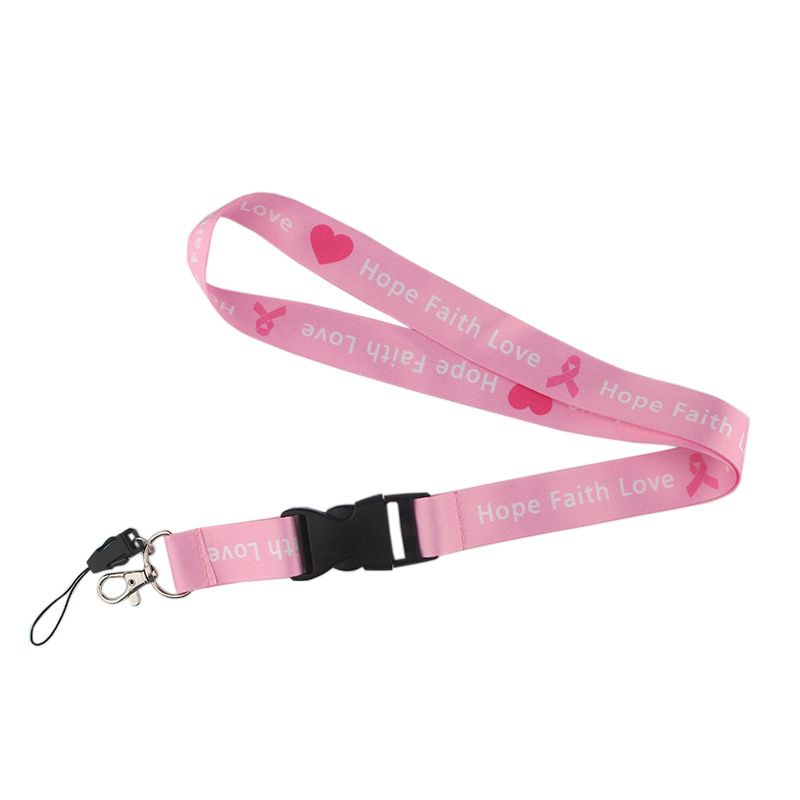 1 * Er040 Breast Cancer Awareness Pink Ribbon Lanyard Badge Id
