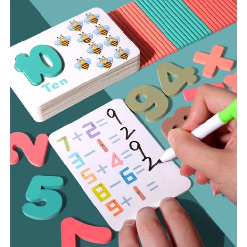 The is an ideal material for early readers, it aids children in easy arithmetic calculations, with an ability to write on an answer cards using the erasable pen. The set encourages kids who are still learning how to write numbers using the erasable pen.