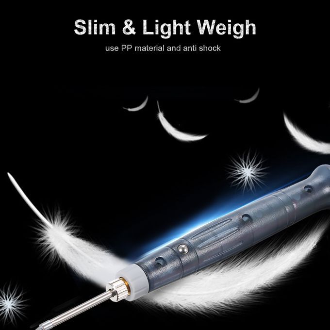 If stop working, please press the metal point on the body of the soldering iron, them the LED light will be turned off.