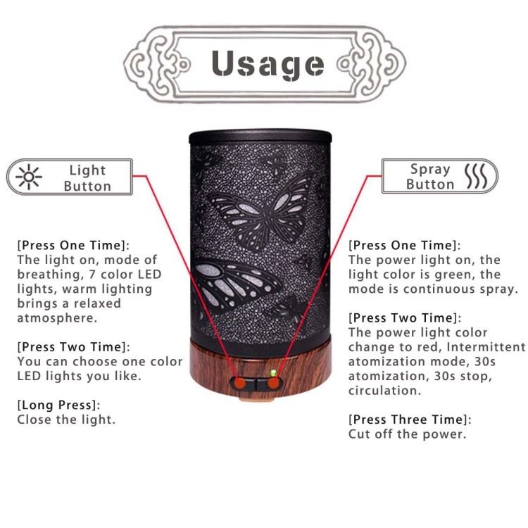 erfly Pattern Humidifier LED Aromatherapy Air Purifier