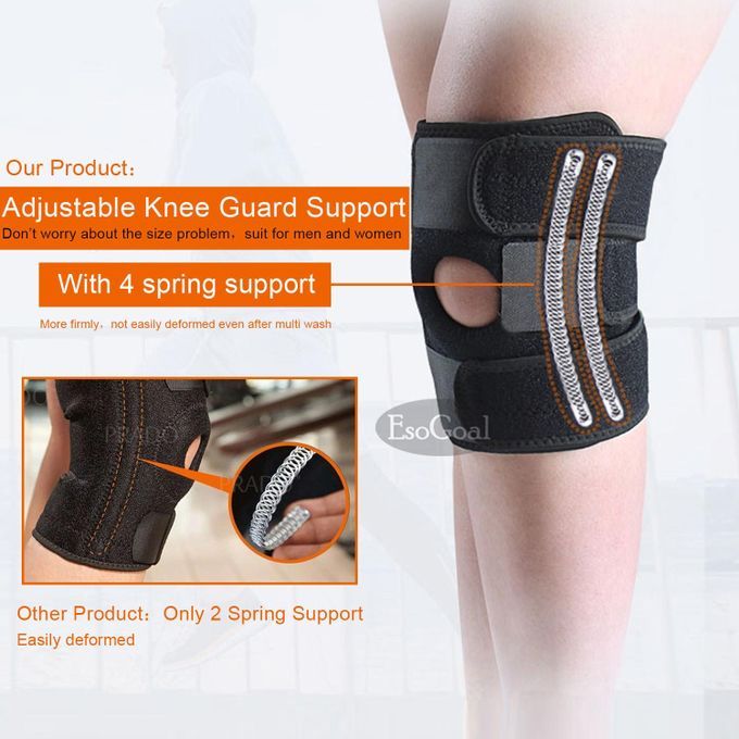 Welcome to the treasure box brand EsoGoal, we have all the products you want.we are committed to providing the best and most comprehensive products, the most practical design, and the most timely after-sales service. If you have any questions during the purchase, please feel free to contact us. Have a pleasant shopping. With 4 spring support(other seller only 2 spring),not easily deformed even after multi washAdjustable velcro belts to fit your knee,with a pair of knitting knee guardHigh quality Ok cloth,can't afford the ball,strong viscosityHelps support your knee effectively and reduces the risk of any knee injury,good ventilation, good sweatWide range of uses,suit for walking, mountain climbing, football, basketball, badminton, tennis, track and field and many other sports