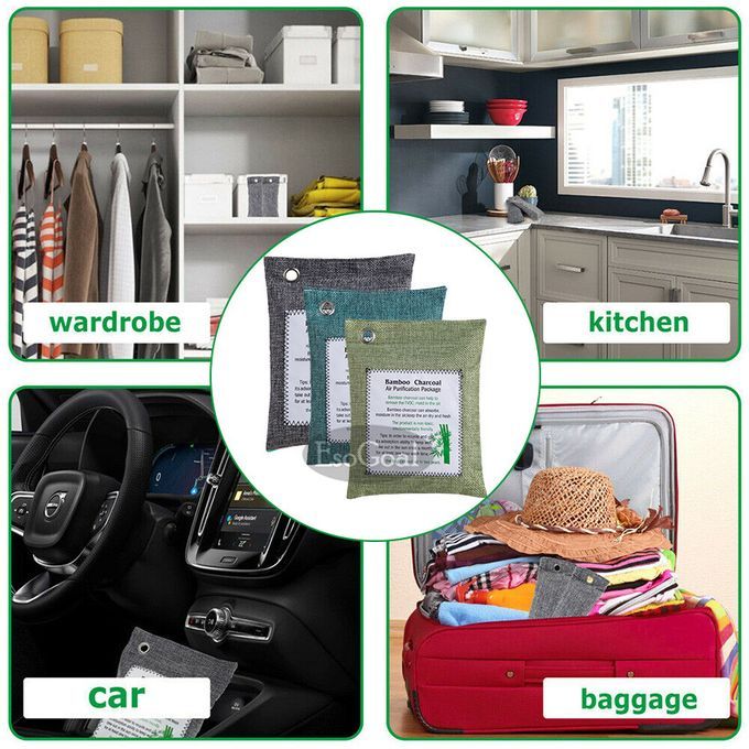 Welcome to the treasure box brand EsoGoal, we have all the products you want.we are committed to providing the best and most comprehensive products, the most practical design, and the most timely after-sales service. If you have any questions during the purchase, please feel free to contact us. Have a pleasant shopping. Ultra-strong Absorptive :Made with 100% natural activated bamboo charcoal,which contains millions of tiny porous holes that naturally absorb and eliminate odors like a spongeReusable and Long Lasting:Place bags in direct sunlight for one or two hours once a month to release the trapped moisture and unpleasant odors from their pores, then these odor eliminators can work like newMore Safety: Breathe deeply and relish in clean air filtered,which has no fragrance or chemicals. Leave it around your pets and your children while no worry for any incidents that might jeopardize their healthWide Applications: The bamboo activated charcoal odor can be used in car, gym bag, smelly shoes, pet areas, bedroom, bathroom and fridge,absorb moisture or stink smell quickly and keep air fresh