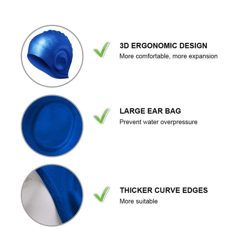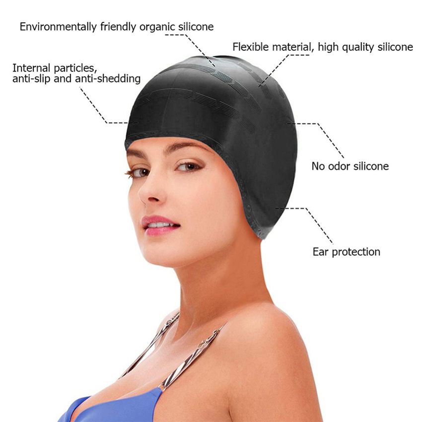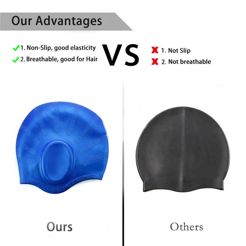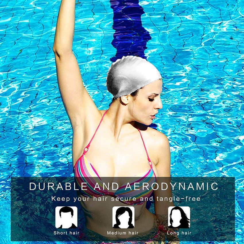 - Eco-friendly, breathable, non-toxic silicone giving a long lasting, durable swim cap