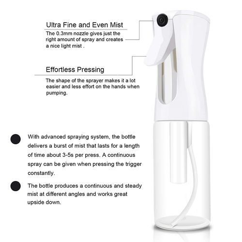 - Clear PET material empty spray bottle,10oz/300ml,continuous super fine mist,easy to refill