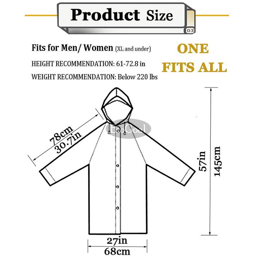 - EXTREMELY WATERPROOF:Long sleeves with rubber band and big drawstring hood design keep you dry intherain,allows you to perfectly hold your fashion charm even on rainy days