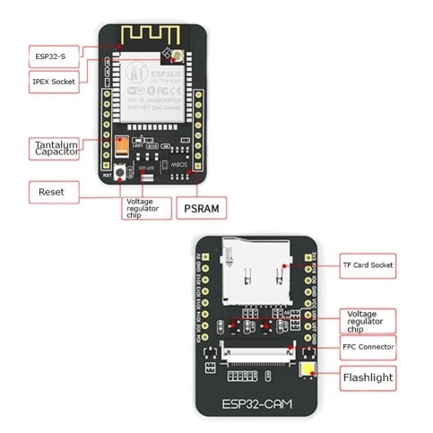 The ESP32-CAM is a small-sized camera module. The module can operate independently as a minimum system with a size of only 2740.54.5mm and a deep sleep current of up to 6mA. It can be widely used in various IoT applications. It is an ideal solution for IoT applications.