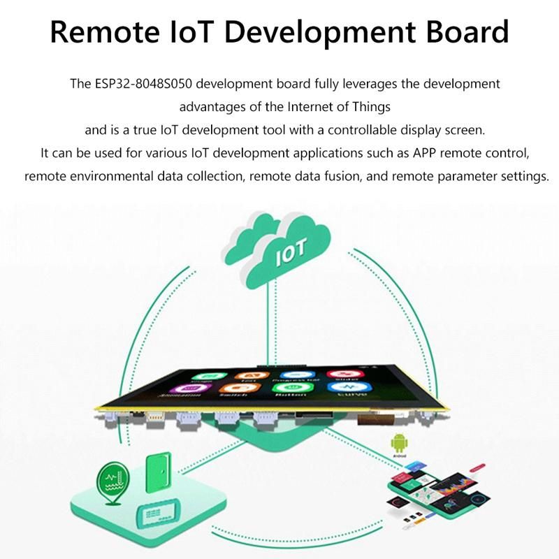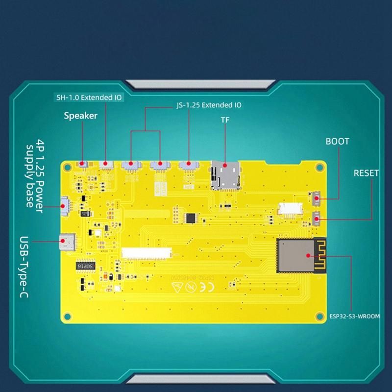 2. Memory and High-Resolution Display: With 8M PSRAM and 16MB Flash, this development board also has an 800X480 resolution IPS LCD TFT Intelligent Display Module, providing color display.
