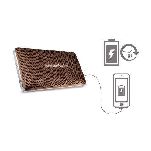 Elegance, sophistication and extreme portability to fit your style.Wireless, portable speaker and conferencing system.Harman Kardon Esquire Mini is a bold, state-of-the-art solution exceeding the needs of the on-the-go professional. No attention-to-detail has been spared - from the lineup of premium materials utilized by master craftsmanship to the chic urban styling of its sublime, uni-body design. Completely portable and wireless, it provides exceptional sound from its dual, high-performance drivers and enhanced bass port design - for the best quality sound in its category. Esquire Mini is also Bluetooth-enabled, for full stereo streaming with your favorite devices. It's the must-have accessory for your audio style. It doubles as a conference phone system with dual-microphone and built-in echo and noise cancellation technology for superb sound and USB access to recharge your favorite devices. An 8-hour, rechargeable Li-ion battery promises remote accessibility while its runway-ready, head-turning appearance translates to an indispensible travel companion for work or play. This is one Harman Kardon designed to deliver surprising levels of style-conscious satisfaction and workhorse levels of professional purpose to enhance what you do in a manner to which you'll likely grow accustomed.PRODUCT FEATURES:ADVANCED CRAFTSMANSHIP REDEFINED ELEGANCE AND PERFORMANCE IN AN ALL-IN-ONE SPEAKER.Real leather, brushed aluminum and ceramics bond to create a masterpiece of strength and por.