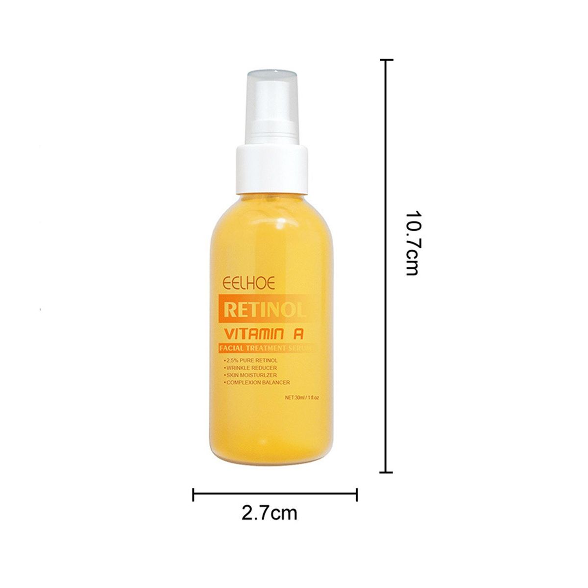 The diameter of product is 2.7cm. The total height of the product is 10.7cm.