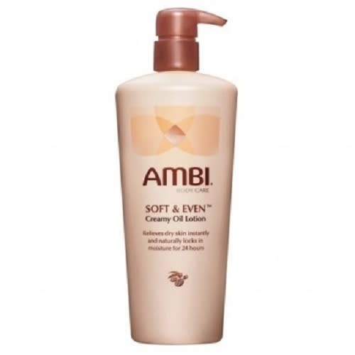 Ambi Soft & Even Creamy oil Body Lotion ia a moisture-rich body lotion that combines the intensive moisturizing benefits of an oil, in a convenient non-greasy lotion form. Its unique formula is enriched with a blend of natural ingredients & ndash; shea butter, known for its ability to soften skin and olive oil, to relieve dry skin instantly as it helps lock in moisture for a full 24 hours. This moisturizer leaves skin silky smooth and even for healthy-looking, radiant skin.