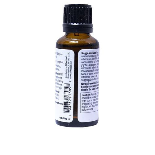 Now Foods Essential Peppermint oil is a 100% pure, highly concentrated undiluted extract that's steam-distilled from leaves of the Mentha piperita (peppermint) plant.
