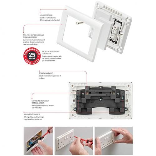 Introducing MK Essentials, a comprehensive range of screwless wiring devices that offers a clean and modern aesthetic. With our 100-years heritage of quality and reliability, We're proud to offer a 25-years Product Guarantee at a price that's impossible to ignore.