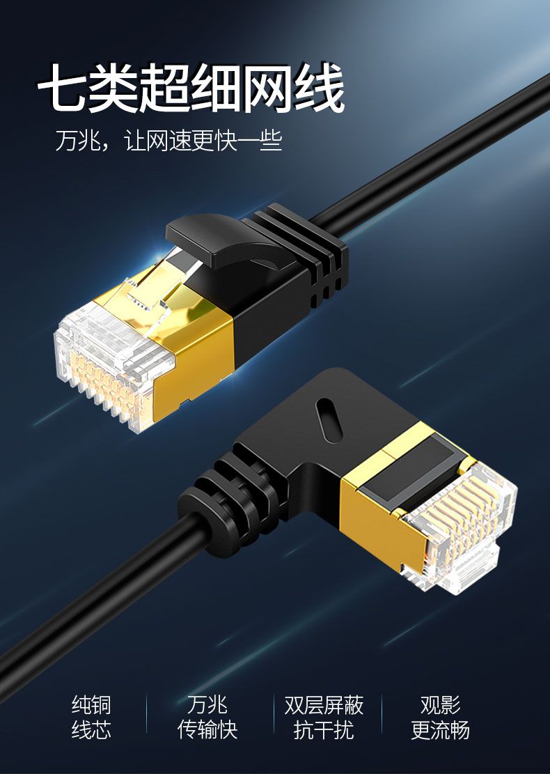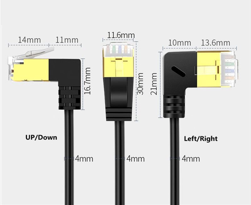 1X Ethernet Thin Cable RJ45 Cat7 6 Lan Ultra Slim Cable UTP RJ45 Network Cable for Cat6 Compatible Patch Cord 90 Degree Right Angle