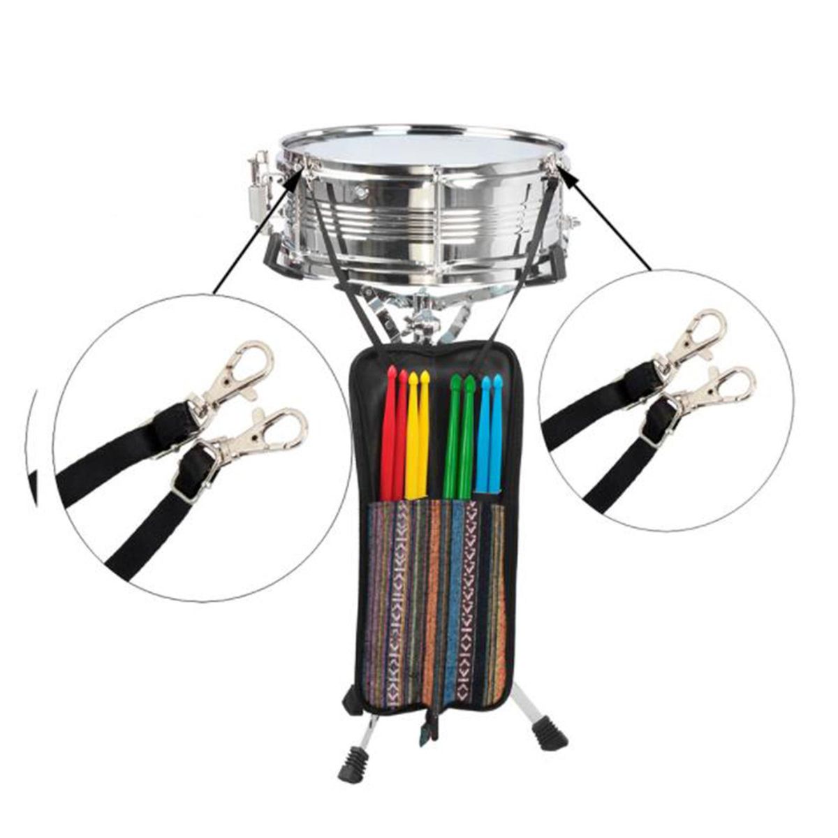 HOOKS: The Drumstick Kit is designed with hooks to hanging from the drum kit for quick access during gigs or practice.