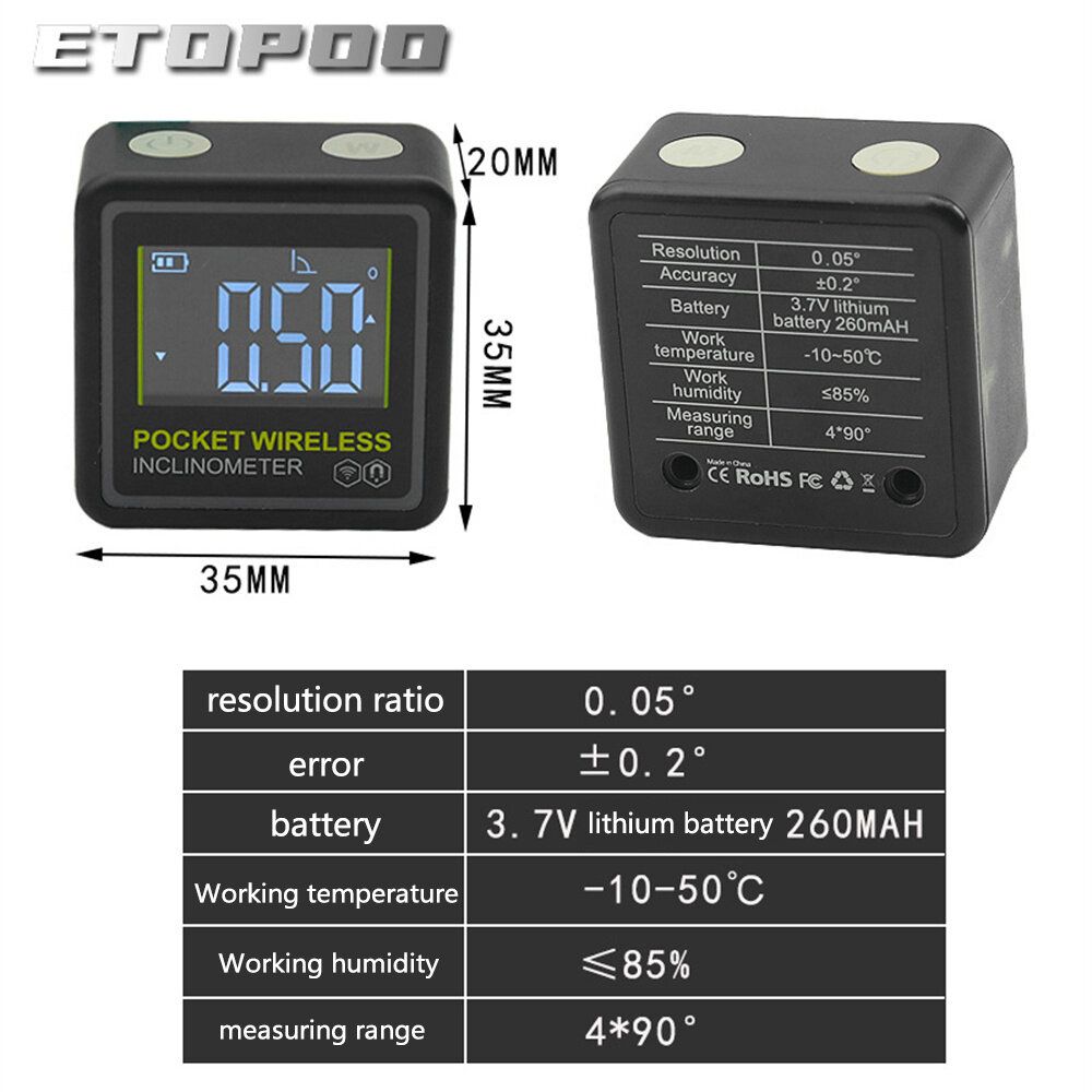ETOPOO introduces its latest model, the Mini Pocket Inclinometer, a compact and portable electronic angle measuring device.