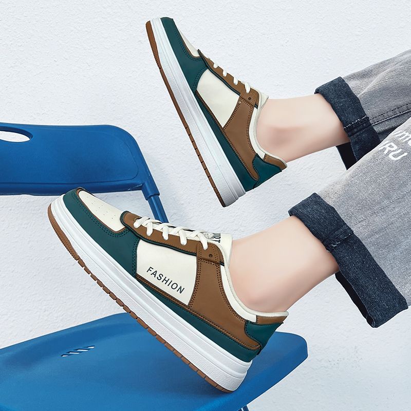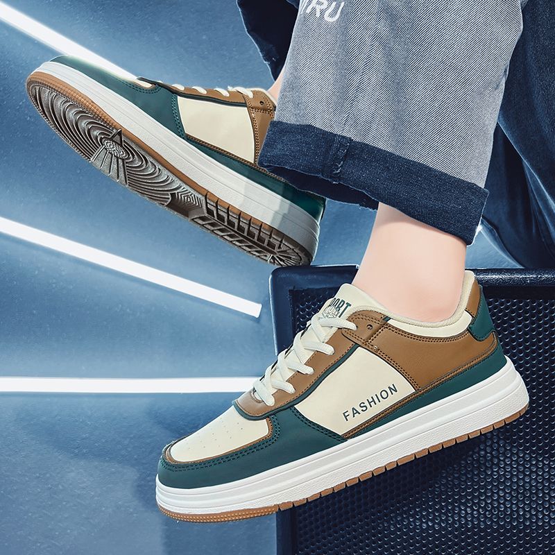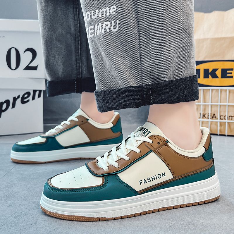 Buy EU 36-47 Men's Leather Casual Sneakers Student Casual Shoes Skateboard Shoes Couple Shoes Women Trendy Vulcanized Shoes White Green in Nigeria