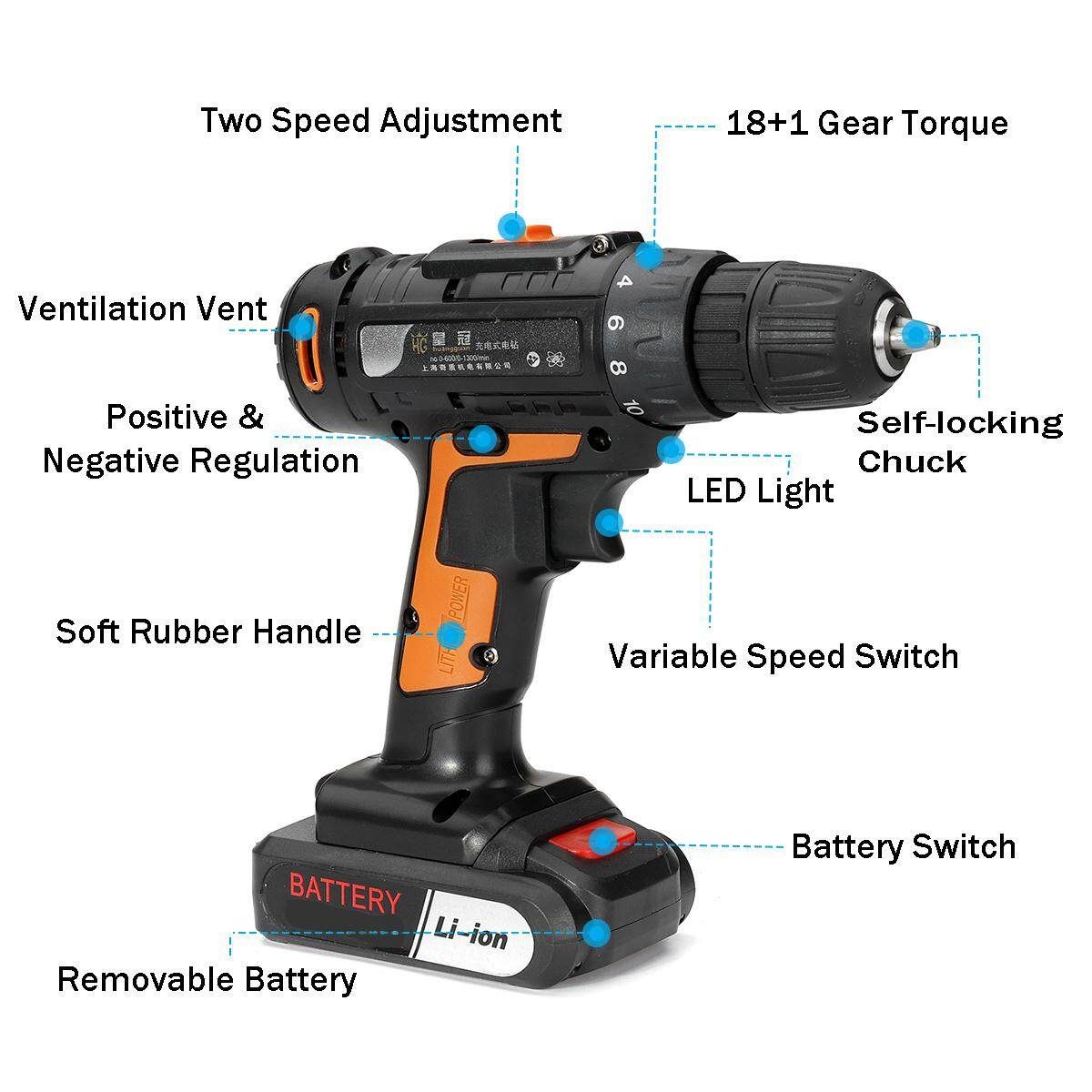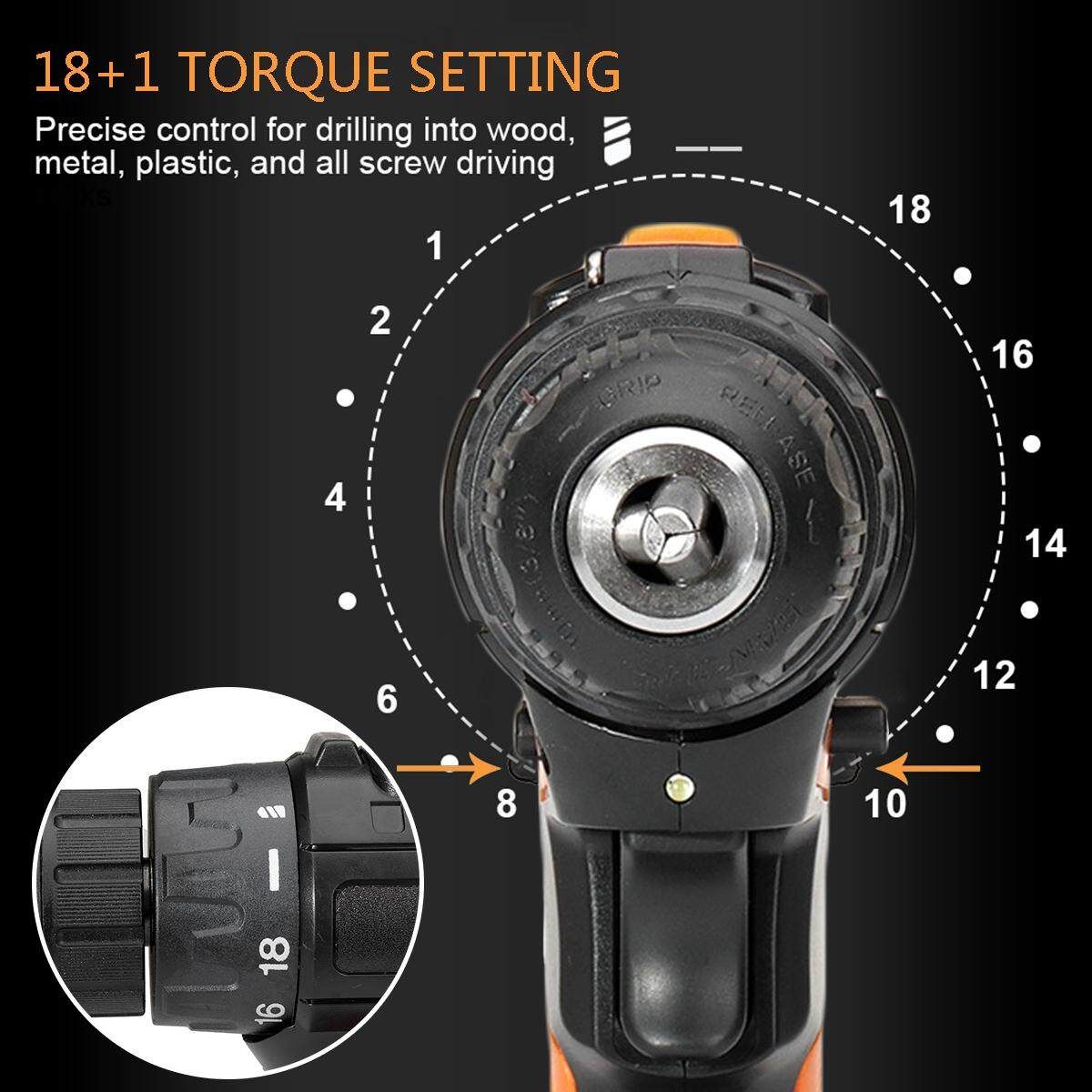 - 18+1 torque setting, precise control for drilling wood, metal, wall and all screw driving.