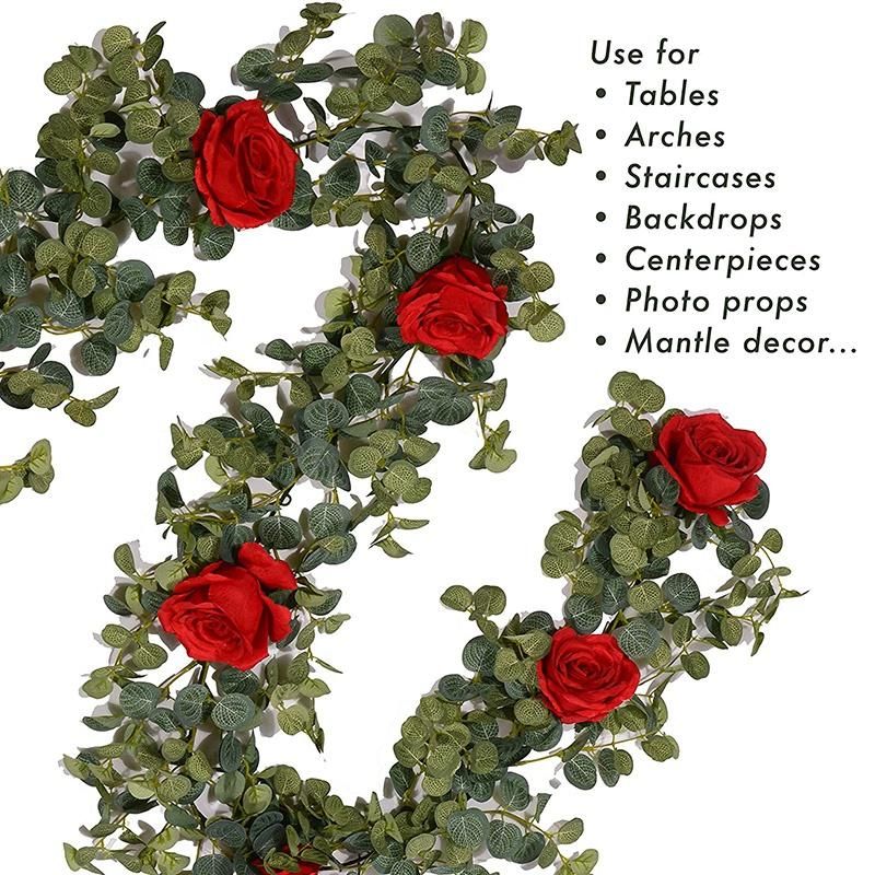Use for signs, , fireplace, party table, wedding reception, ceremony arch decorations. foliage and realistic flowers make great centerpieces, wreaths or backdrop.