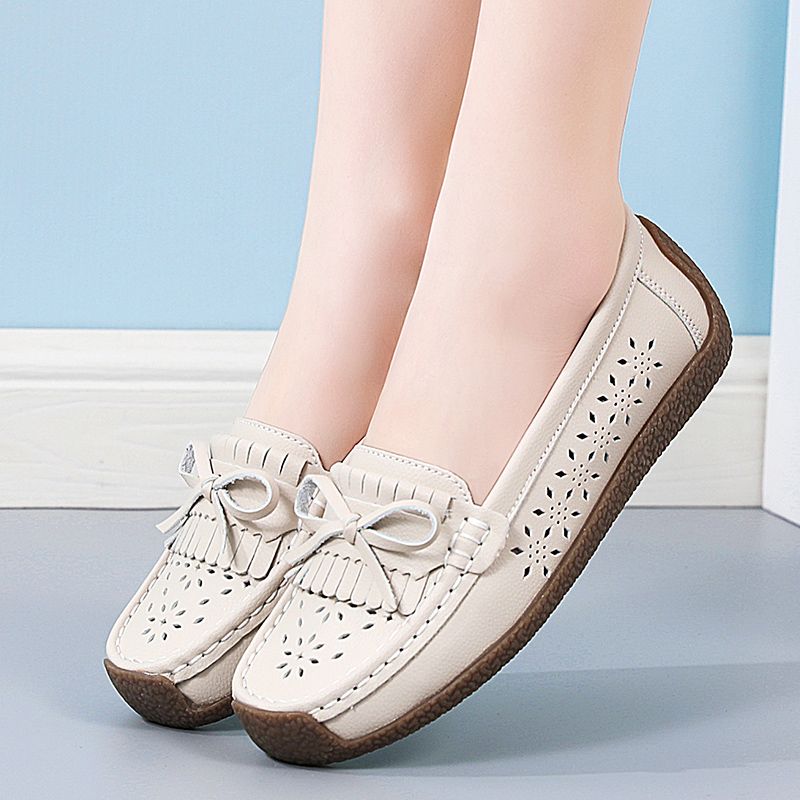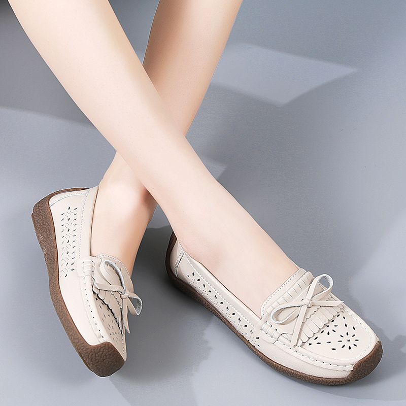 Buy EUR Size 35-44 NEW Women Shoes Oxford Flats Shoes Woman Soft Bottom Cow Leather Women Flats Cut-Outs Summer Hollow Women's Loafers Female Solid Fashion Comfy Slip On Casual Shoes Ladies Ballet Flats Beige in Nigeria