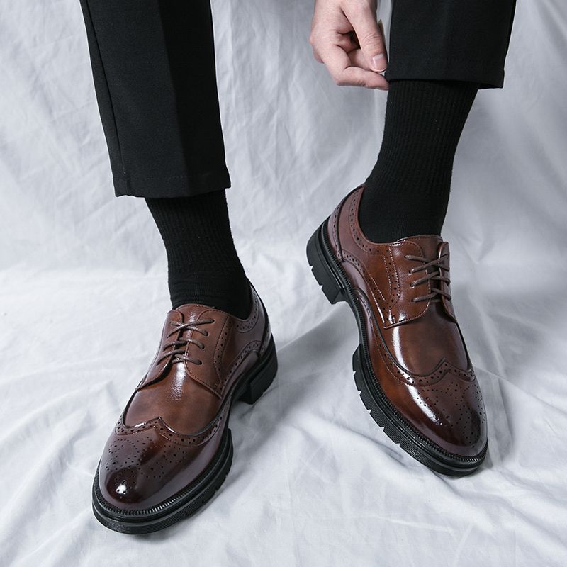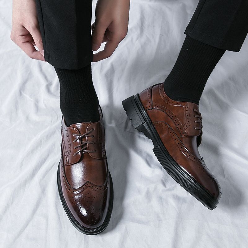 Buy EUR Size 38-46 Gentleman Business Formal Shoes Men Brogue Oxford Lace Up Heightening Office Leather Shoes Top Quality Handmade Calf Leather Party Male Social Shoes Comfortable Fashion Derby Shoes Brown in Nigeria