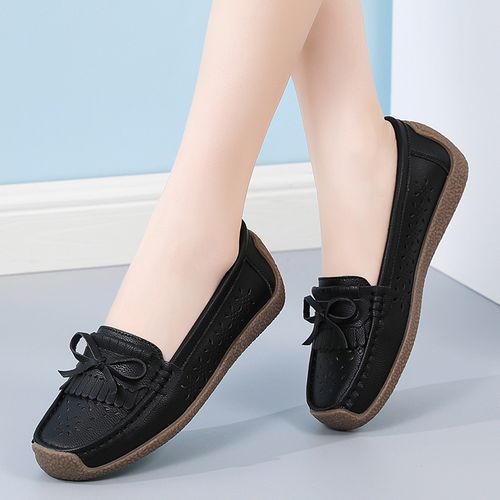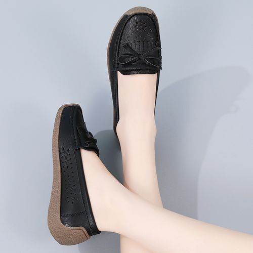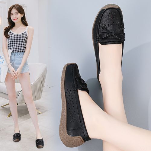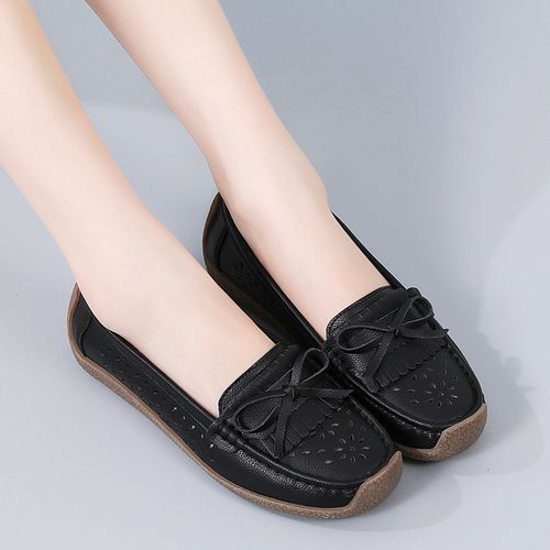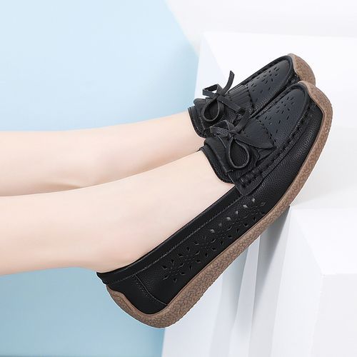 Buy Euro Size 35-44 New Women's Shoes Oxford Flats Women's Soft Soles Cowhide Women's Flats Hollowed Out Summer/Black in Nigeria