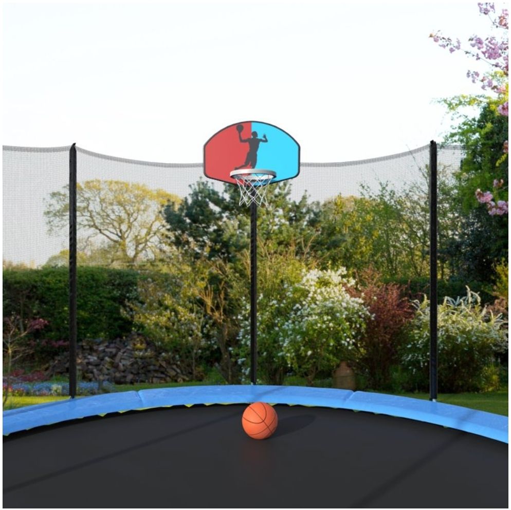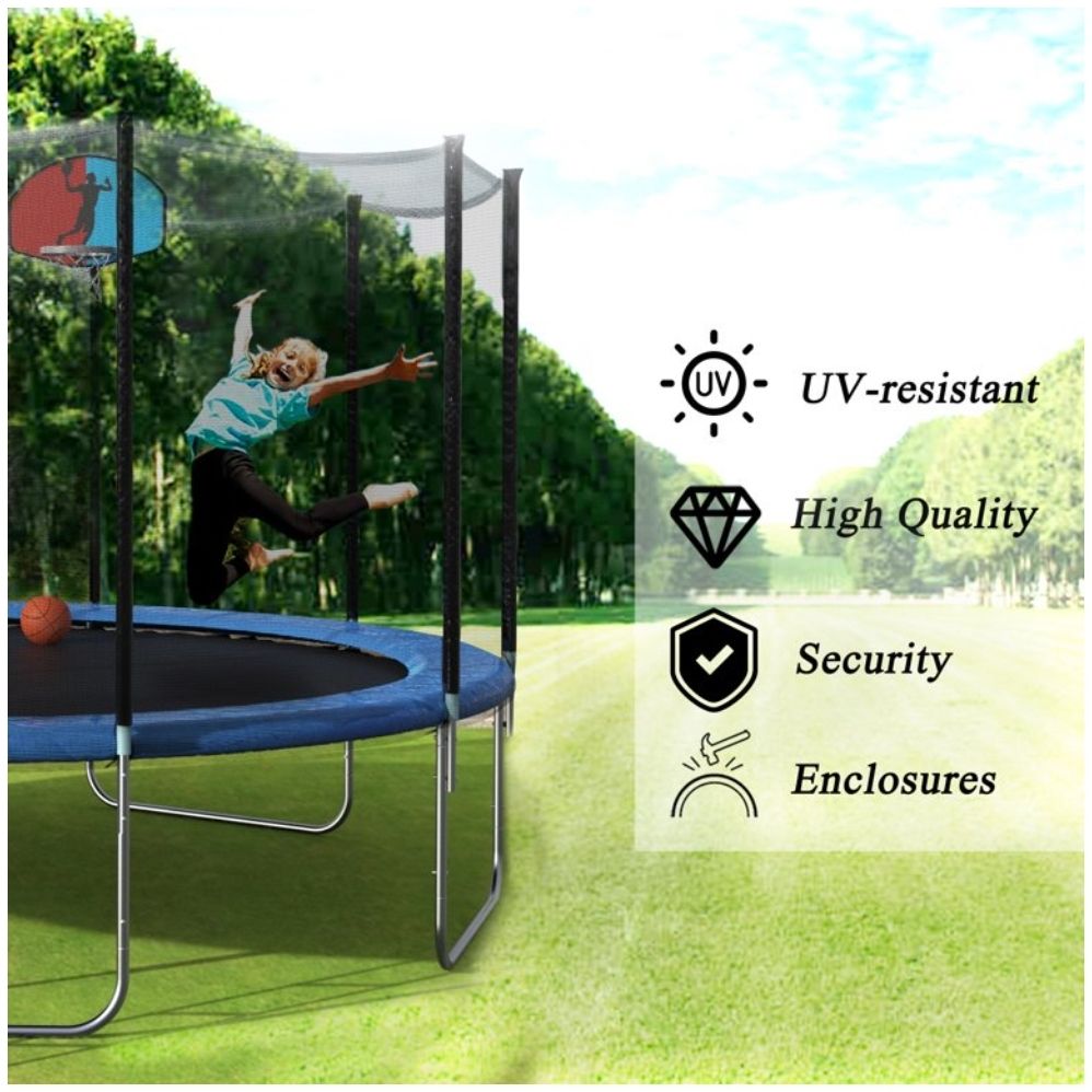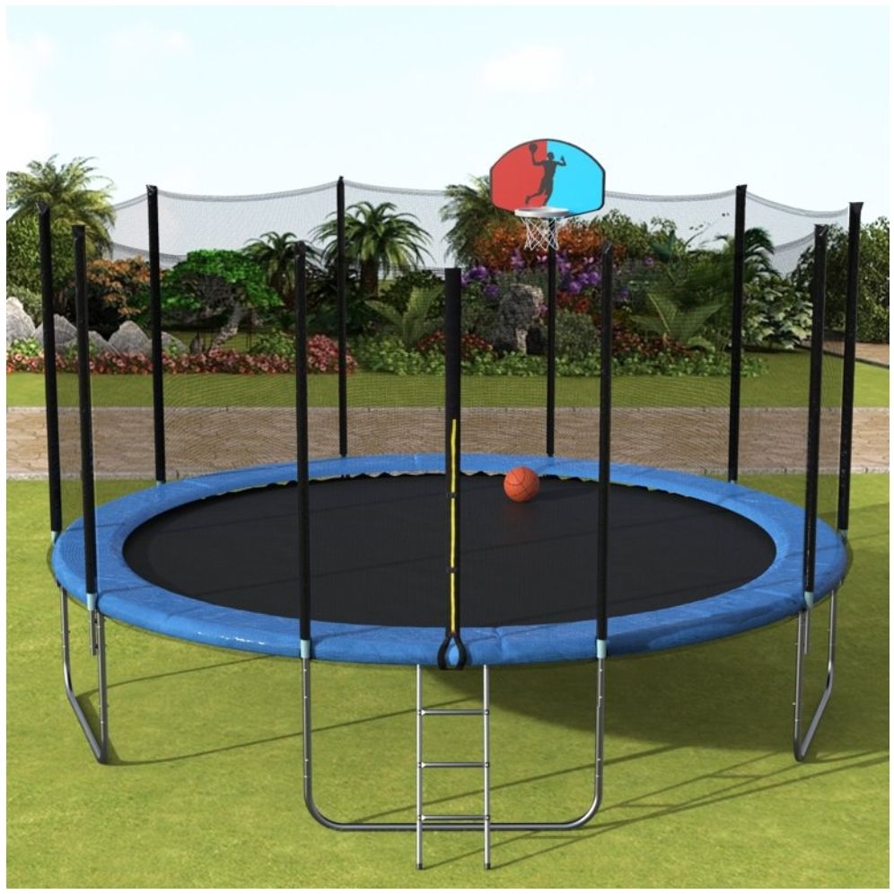 Engage in endless fun and exercise with the outdoor trampoline. We always put the quality of our products first. You can have fun with your child on a trampoline safely. Show off your basketball technology with the 14 Foot Trampoline with basketball hoop. Constructed with long lasting durability in mind, the trampoline is expertly designed with high quality materials a spacious premium UV Protected bounce mat, heavy-duty frame and coiled springs, wear resistant protective foam and more, making your trampoline able to use for a long time, family and friends able to bounce for years to come. Enjoy your trampoline worry free with the 360 degree taut netting that tightly wraps around the trampoline up to over 6 and a half feet high, designed to safely contain the highest bounces.