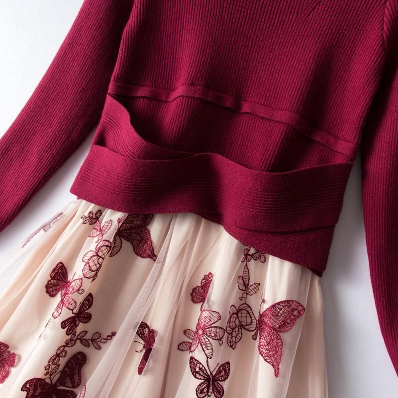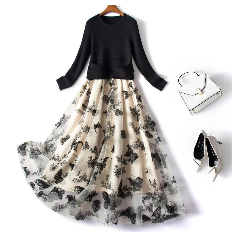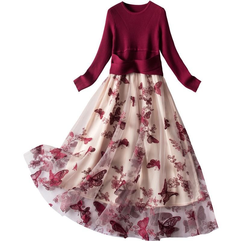Buy Europe-style boutique New Year knitted stitching mesh dress 2023 spring new slim embroidery dress in Nigeria