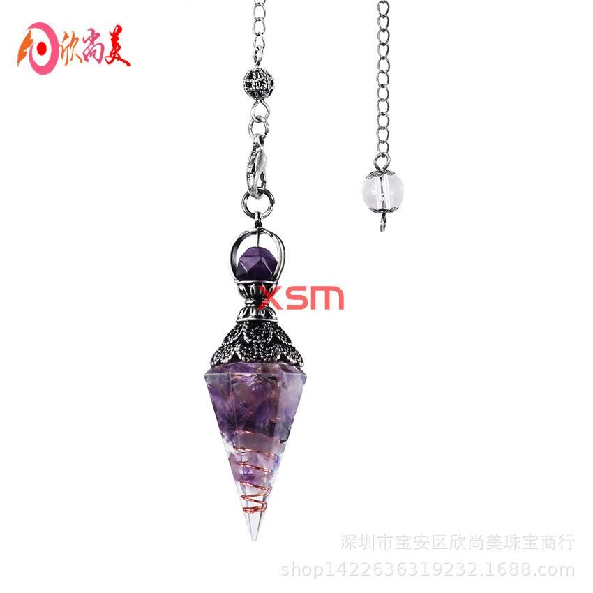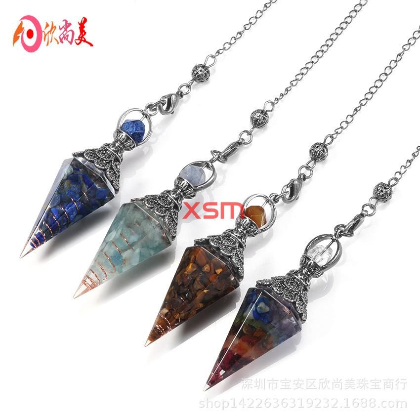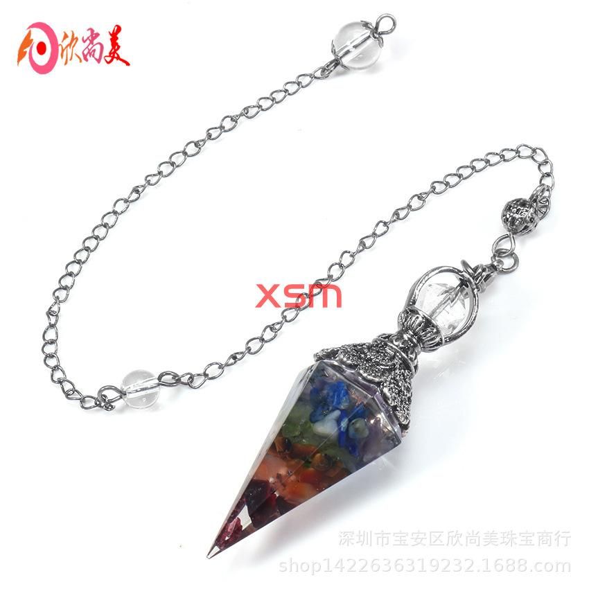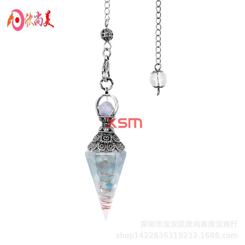 Buy European and American cross-border foreign trade new accessories retro natural crystal gravel resin colorful hexagonal cone pendulum pendant Green gold in Nigeria