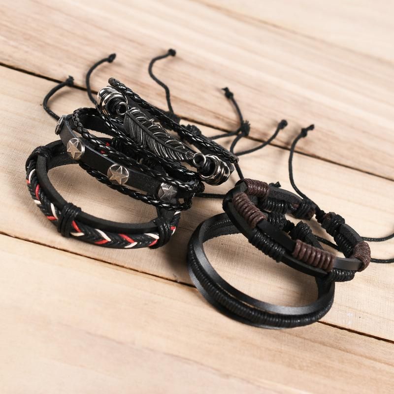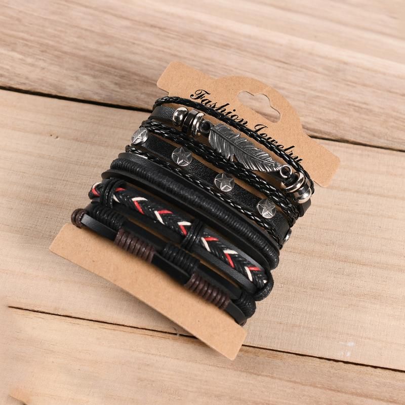 Buy European and American retro punk men's bracelet combination multi-layer leaf feather leather handmade trend bracelet 6 combinations in Nigeria