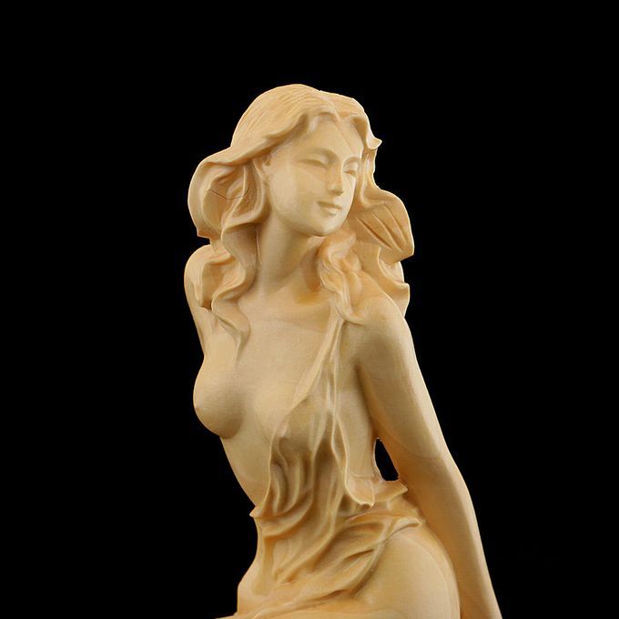 Long Hair Beauty Boxwood Hand Carving People Fugure Statue Sculpture Ornaments