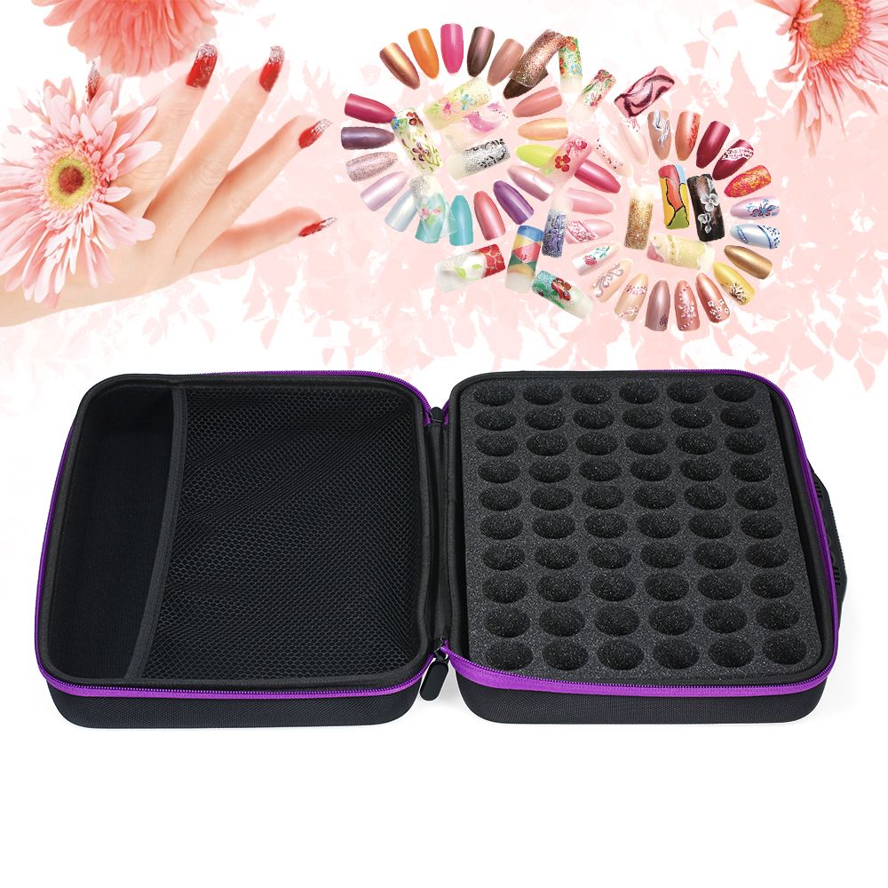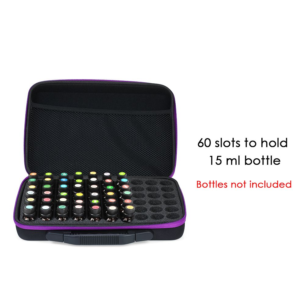 Features:Large Capacity: the sponge interlayer can hold 60 pieces of 15 ml bottles, and mesh pocket can hold other accessories.