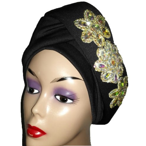 Buy Evangeline Studded Turban Cap - Black in Nigeria