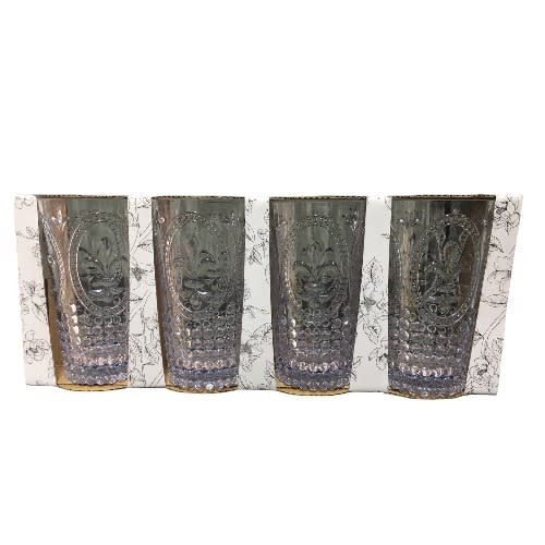 Delano barware sets are uniquely designed with fashion and function in mind; with an elegant traditional pattern that creates texture and shine. This attractive set will coordinate with all casual patterns both modern and traditional. Dishwasher safe. Set of 4 highball glasses, each measures 5-1/2 inch high and holds 13 ounces.