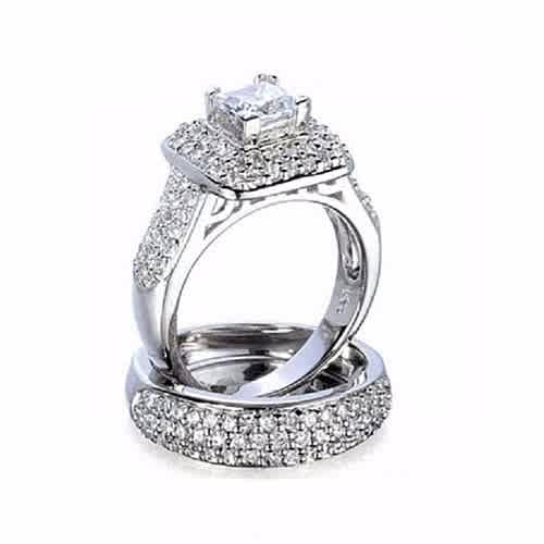 Step into the new life in this sparkling, elegant and classy wedding and engagement ring set. Made of solid 925 sterling silver and tiny cubic zirconia stones that sparkle. Prong setting and very durable.
