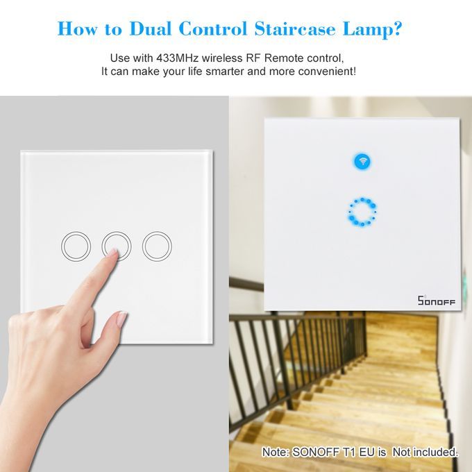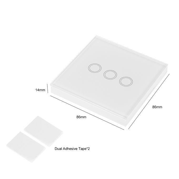 The 3CH sticky T433 86 type wall panel 433MHz wireless RF Remote control transmitter can support all SONOFF products with 433Mhz RF function. After successfully learning codes with 433MHz RF Remote, the touch light switch can be turned on/off indoors. It can make your life smarter and more convenient!