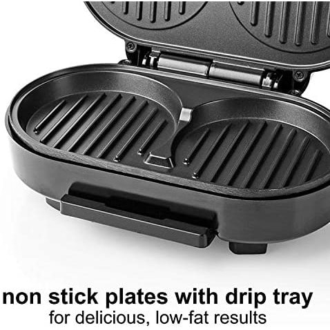 When in use as a griddle, it opens flat for ease of cooking and includes two oil drip trays.