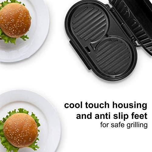 Grills 2 full-size sandwiches or 4 hot pockets in less than 5 minutes