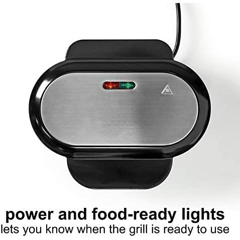 There are 'on / off' and 'ready' neon indicators to show the power state of the sandwich maker and when it is ready to start cooking.