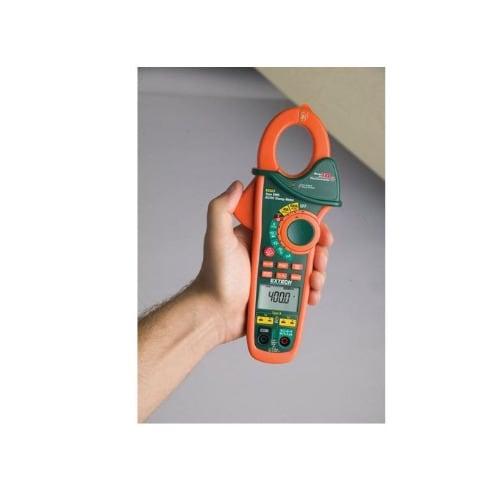 The EX623 will measure AC current up to 400 amps, as well as AC/DC voltage, frequency, resistance, diode, and capacitance. Its wide-opening, 1-1/4-inch circular jaw can fit around cables up to 500 MCM. The Extech also features data hold and peak hold of current surges during motor startup and other transience, "freezing" data in the display for longer viewing. Additional features include functions for HVAC flame rod current measurements and auto-ranging with manual override.