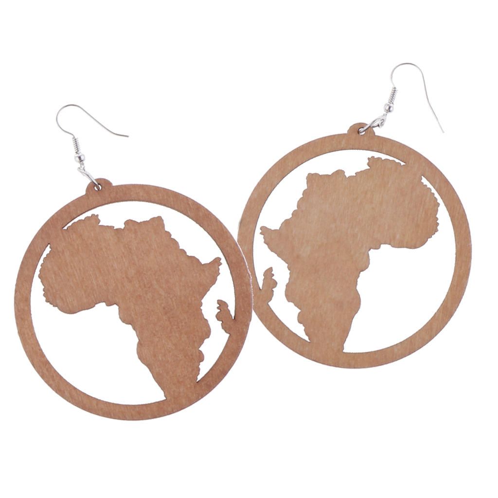 Wooden Dangle Earrings;African Map Earrings;Exaggerate Earrings;Geometric Ear Hook Earrings;Round Wood Drop Earrings;Stylish Women Earrings;Big Dangle Earrings