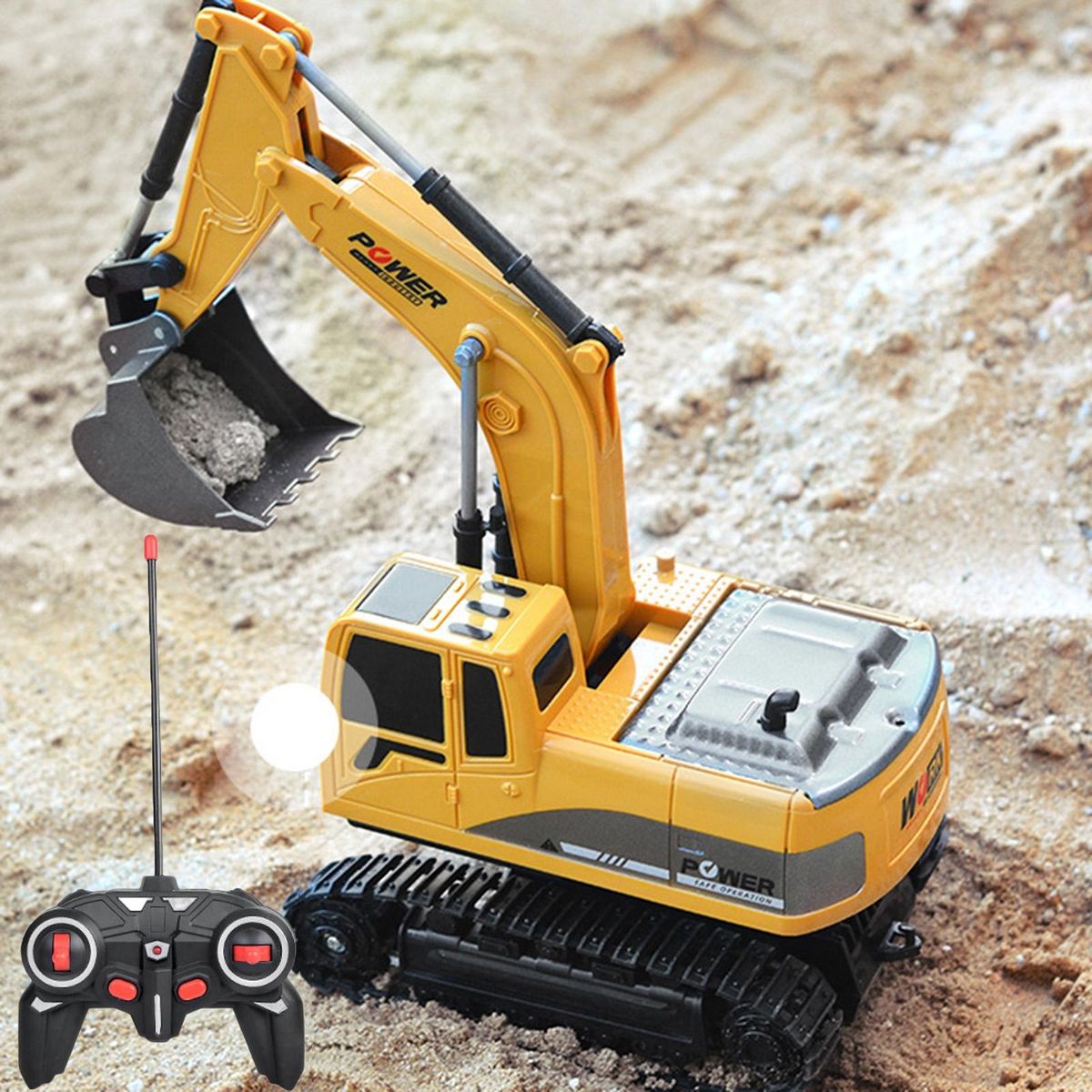 Power Supply: Excavator, 800mAh 3.7V Battery (Built-in); Remote Control, 2 x AA Batteries (Not Included)