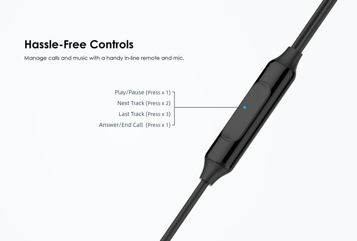 Hassle-Free ControlManage calls and music with a handy in-line remote and mic