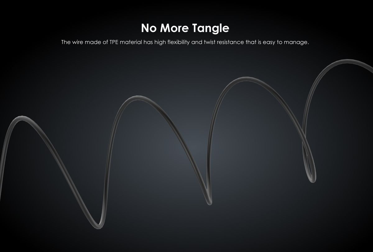 No More TangleThe wire made TPE material has high flexibility and twist resistance that is easy to manage