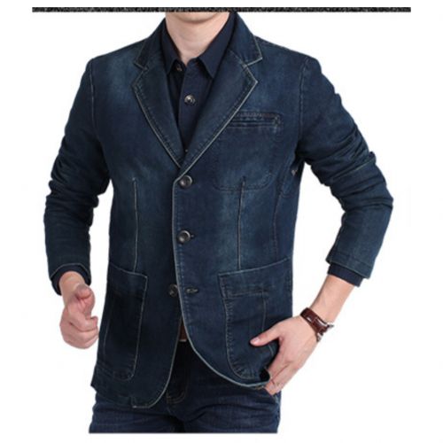 Super Executive Excellent Men's Denim Cotton Suit Fit Jacket Coat. Elegant Modern Hot Style Design. Strong Long Lasting Durable. Suitable For Events and Outing. Sustainable Comfortable Reliable Breathable Washable. Easy to Wash. Machine or Hand Wash Using Soap or Detergent. NON-DECORATION.MATERIAL IS PURE COTTON DENIM COLOR IS DARK BLUESIZE IS 4XL