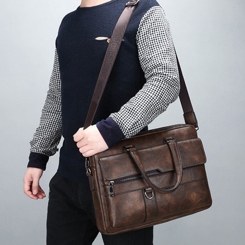 Buy Executive Men's Leather Business Bag - Khaki - 39cm x 28cm x 14cm in Nigeria