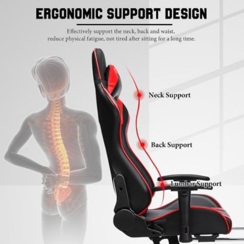 This gaming chair is multi-functional, and this is one of the many reasons why it is so great and comfortable. This Gaming Chair extends the full length of the back with support for the shoulders, head, and neck. Our chairs are crafted to perfection and designed to the bodies natural shape, you will find complete comfort with its furniture quality PU leather.